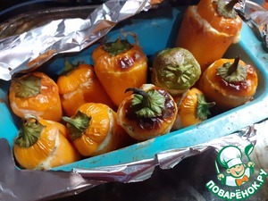Перцы заполнить начинкой и выложить в форму (вертикально)