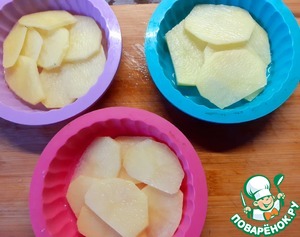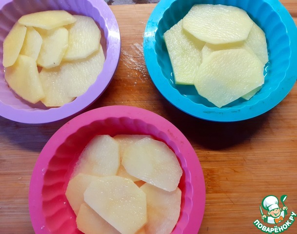 В формочки смазанные маслом выложить картофель. посолить
