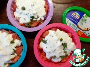 Залить рыбу с картофелем творожно-молочным соусом