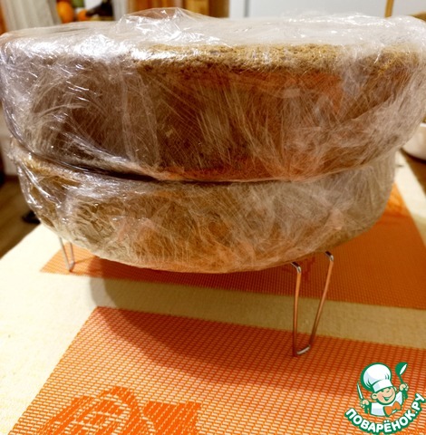 Готовые бисквиты остудить на решётке, а затем обернуть полиэтиленовой плёнкой и оставить при комнатной температуре на 8-12 часов. Это необходимо делать для того, чтобы в готовом бисквите хорошо распределилась влага и он не крошился при последующем разрезании на коржи. Я обычно пеку вечером и оставляю на ночь. Вот такие 2 бисквита у меня получились.