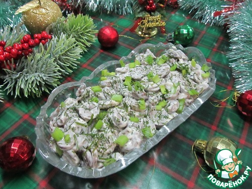 С этим салатом связана одна история из 90-х. Мы часто справляли новый год у маминого брата в деревне. У них большой дом, да и возле дома раздолье - есть место и для ёлки, и для веселья. Раньше купить субпродукты была проблема, но поскольку дядя с женой работали на птицефабрике, то у них на праздничном столе сердечки были всегда. В тот новый год у них в гостях была какая-то родственница, которая на дух не переносила ничего куриного. И для неё мало блюд подходило, в которых не было бы курицы. И вот поставили салат с сердечками. Ещё не успели ничего сказать, как женщина с радостью кинулась к "грибочкам". Тетя подала нам знак, чтобы молчали. Мы конечно же промолчали, а потом было уже не до того - Новый год, веселье. Лишь утром тетя призналась женщине, чем она угощалась. Посмеялись... И хоть она курицу так и не ела, от "грибочков" не отказывалась. С тех пор этот салат мы стали называть "Куриные грибочки".