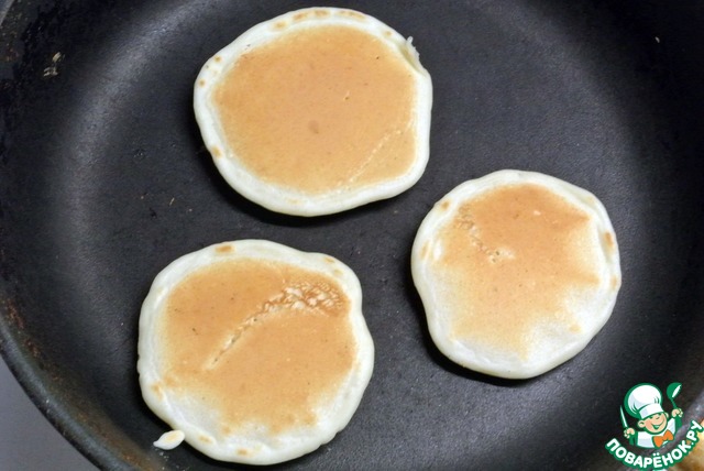 Жарить на сухой сковороде, наливая по 1 столовой ложке теста.