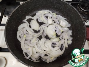 На сковороду добавить 2 ст. ложки подсолнечного масла ТМ "Олейна" добавить нарезанный репчатый лук.