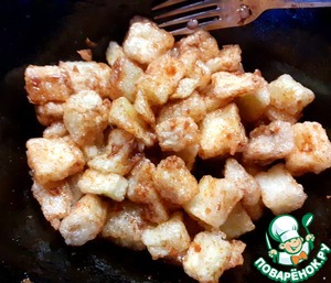 Обжариваем на 1 ч. л. растительного масла чеснок и чили. добавляем соевый соус.