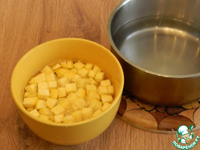 Зальем горячей водой и оставим на 5 минут, чтобы ушла горечь.