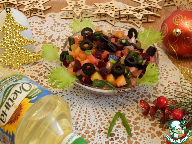Захотелось винегрета, но с новыми продуктами. Вместо картофеля - репа - очень полезный и малокалорийный овощ. Вкус у репы - что-то среднее между картофелем и морковью с привкусом горчицы. Прекрасная замена картофелю в винегрете.