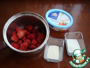 Пока застывает клубничное суфле, из подготовленных ингредиентов приготовим сливочную заливку.