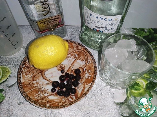 Следом влить водку и мартини. Добавить дольку лимона (я выжала из дольки сок).
