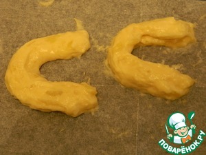 Выкладываем тесто на пергамент, формируем ручки для корзинок.