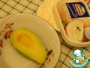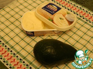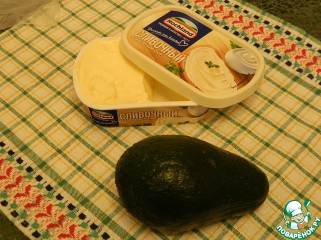 Натрем авокадо на мелкой терке. Смешаем с плавленным сыром, добавим чесночные стрелки измельченные.