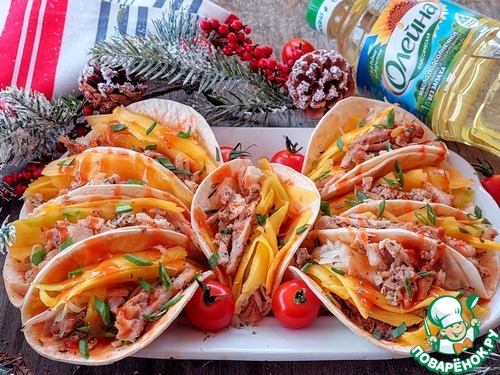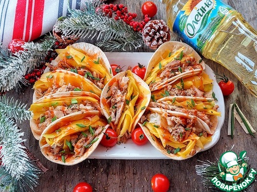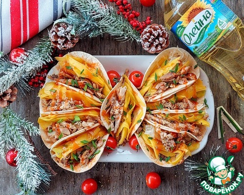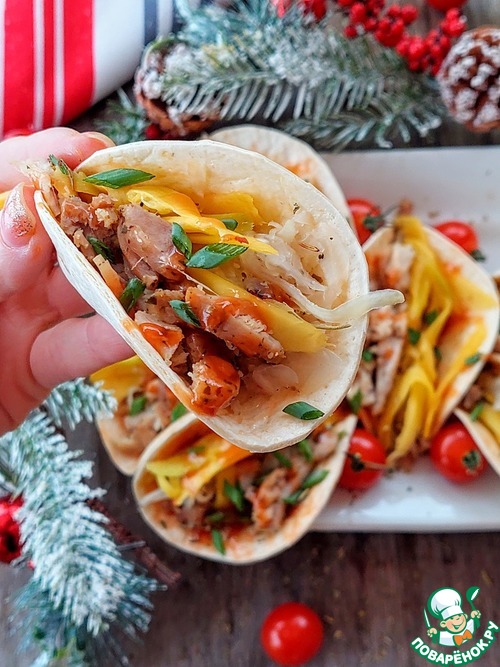 Предлагаю тако с курочкой, легкой сладостью манго и ароматной капустой. Закуска отлично подойдет для праздничного стола или дружеской вечеринки.