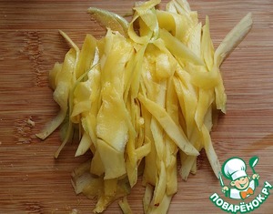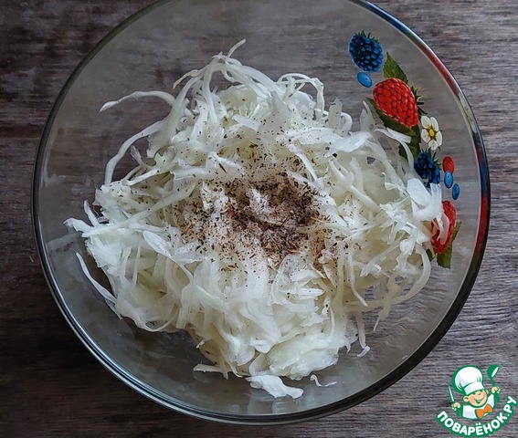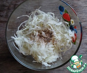 Далее нарезать капусту соломкой, добавить к ней остальные специи из сковороды и полить соком лимона (1/4 лимона). Хорошо перемешать.