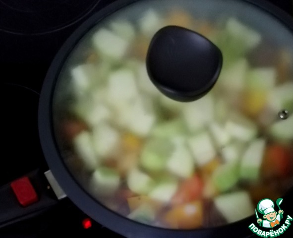 Накрыть крышкой и потушить 7 - 10 минут.