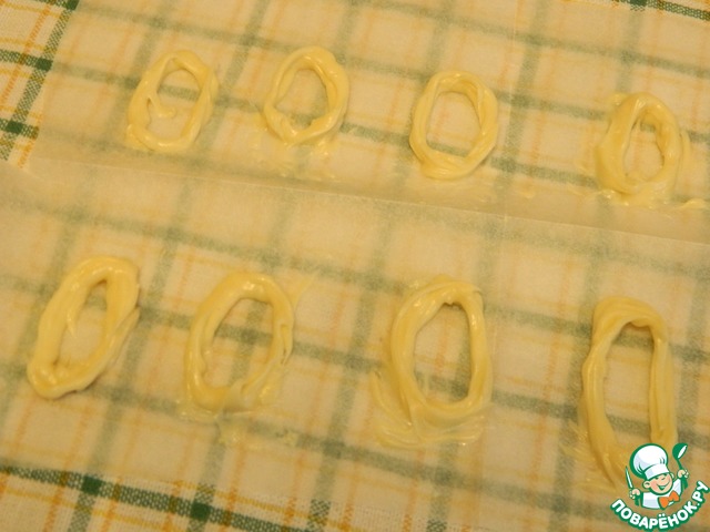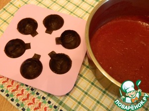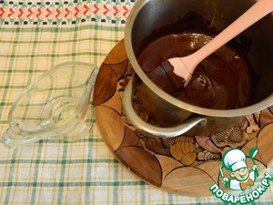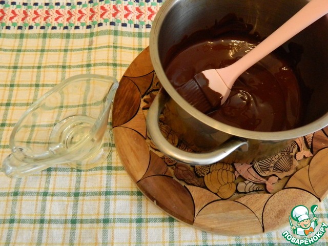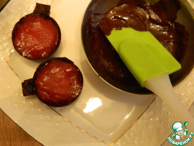 Я использовала остатки растопленного шоколада. Нанесла тонким слоем на верхнюю часть шарика на начинку.