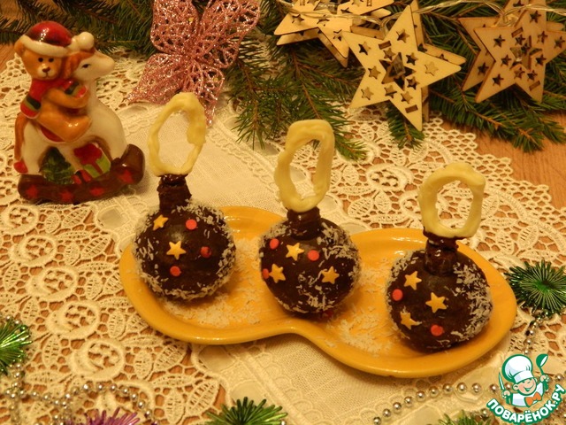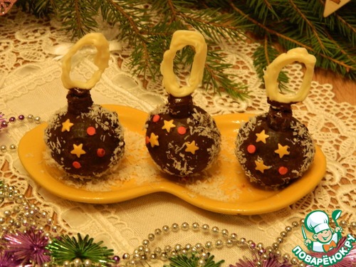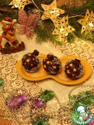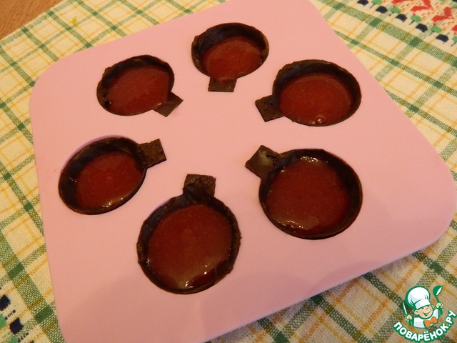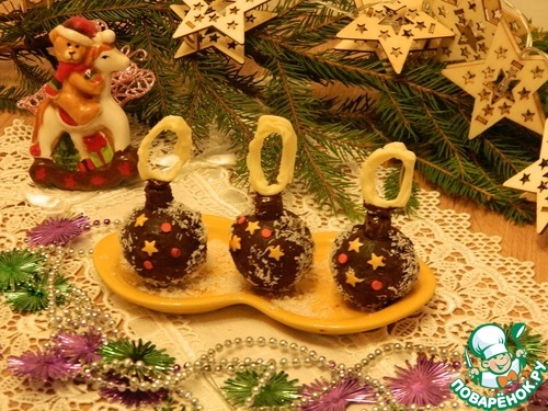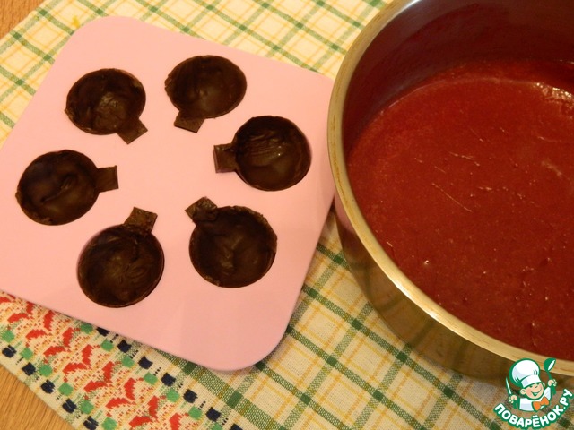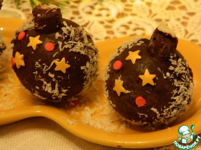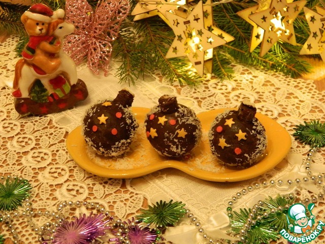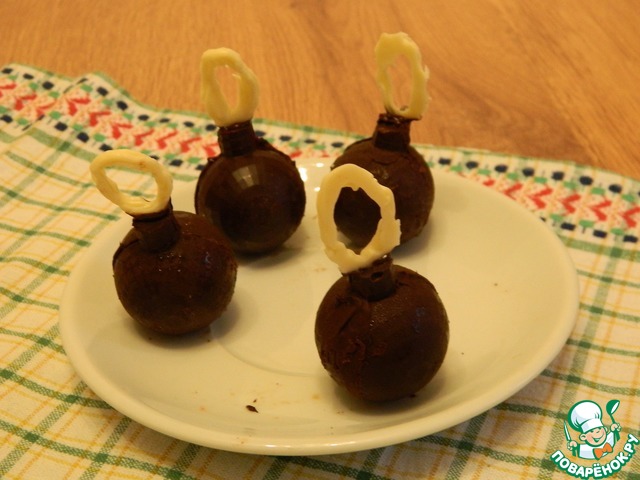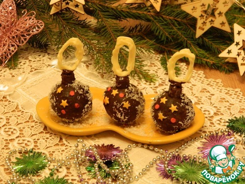 В Новый год с новыми игрушками. Рискнула воплотить свою мечту, приготовить десерт в виде новогодних елочных игрушек. У меня шоколадные шары с начинкой из малинового желе.