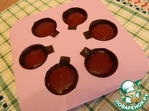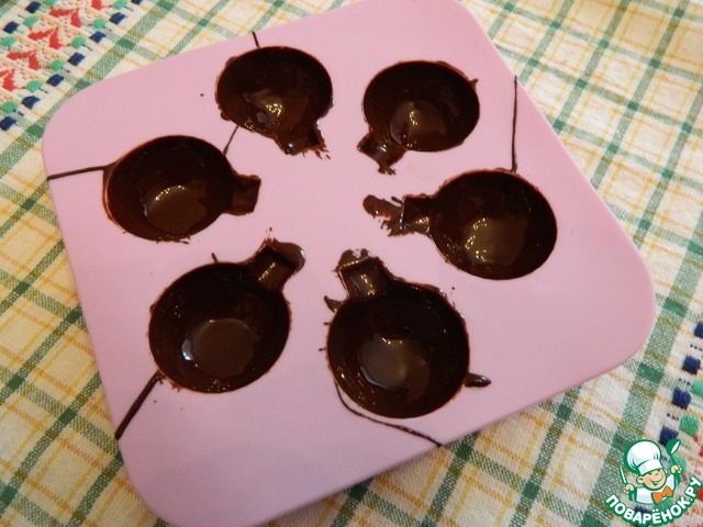 Возьмем форму и нанесем шоколад на стенки, поставим в морозильник на 10 минут. Через 10 минут достанем форму и нанесем еще один слой шоколада, поставим в морозильник еще на 5 минут.