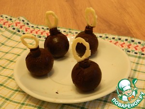 Приклеила ниточки с помощью того же шоколада. Вот такие шоколадные шарики с начинкой из малинового желе у меня получились. Может кому-то моя идея понравится и он рискнет повторить мой эксперимент. Поздравляю всех с Рождеством: здоровья, радости, хорошего настроения!