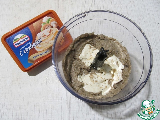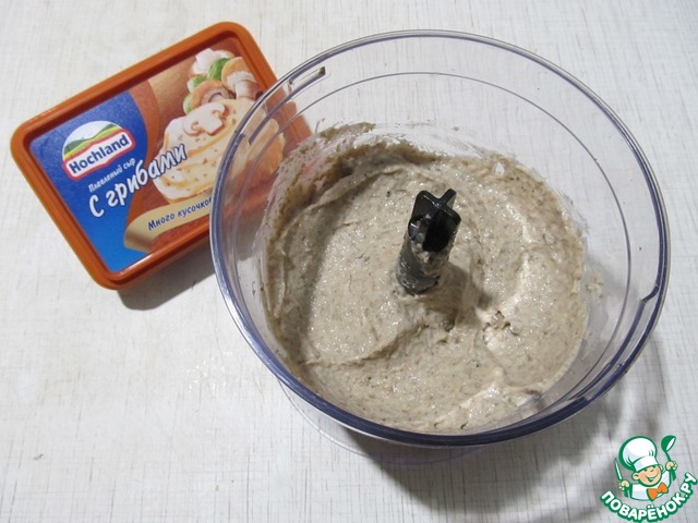 Измельчить в блендере, добавить плавленый сыр.