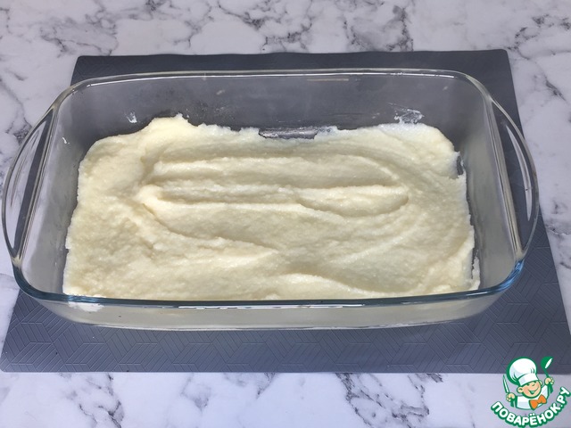 В специально подготовленную форму выливаем половину массы.