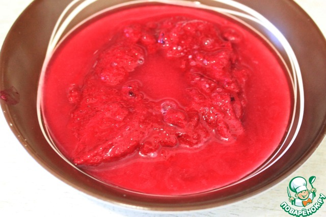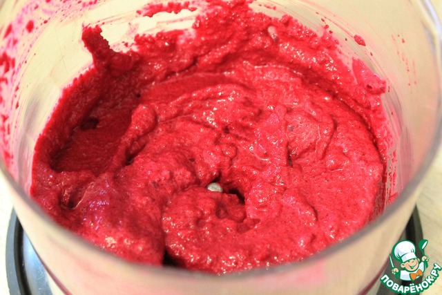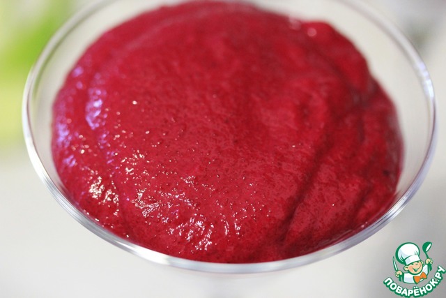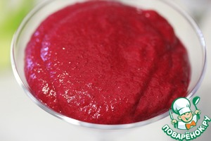 Добавить желатин в свекольное пюре и тщательно перемешать.