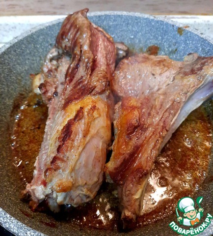 Говяжьи ребра уже эффектно смотрятся в сковороде:)