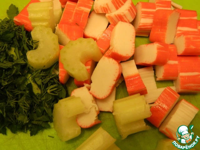 Ингредиенты для «Закуска из крабовых палочек в тарталетках»: