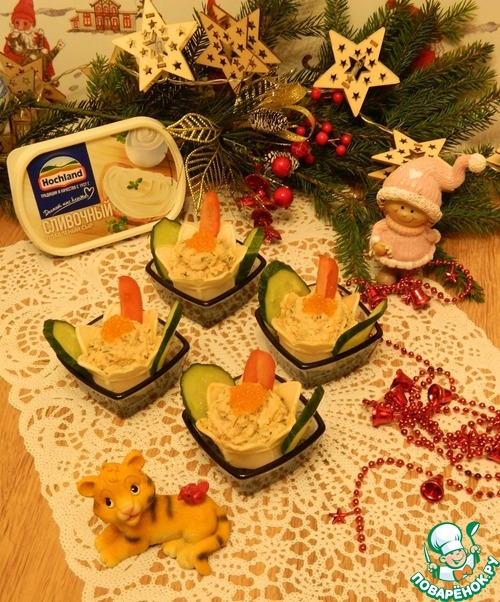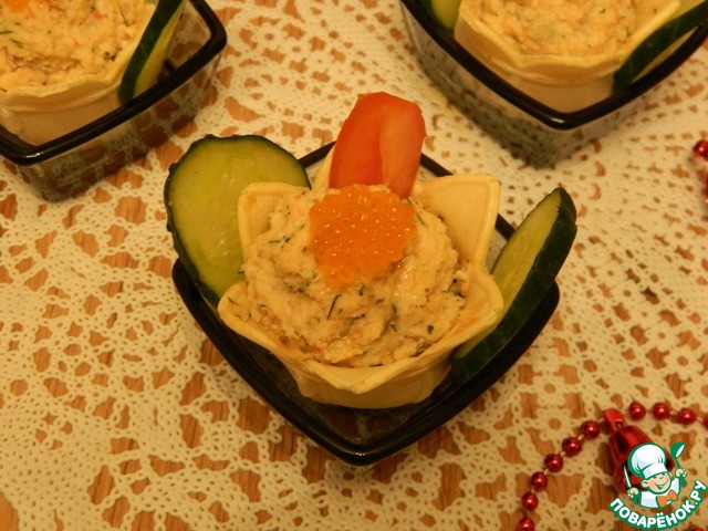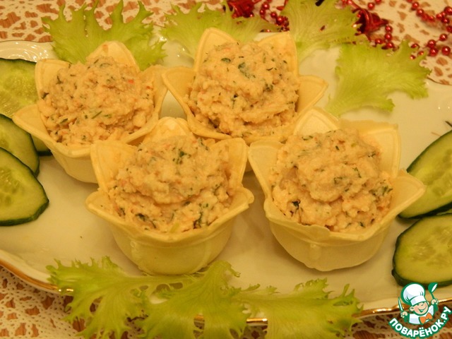 Рецепт «Закуска из крабовых палочек в тарталетках»: