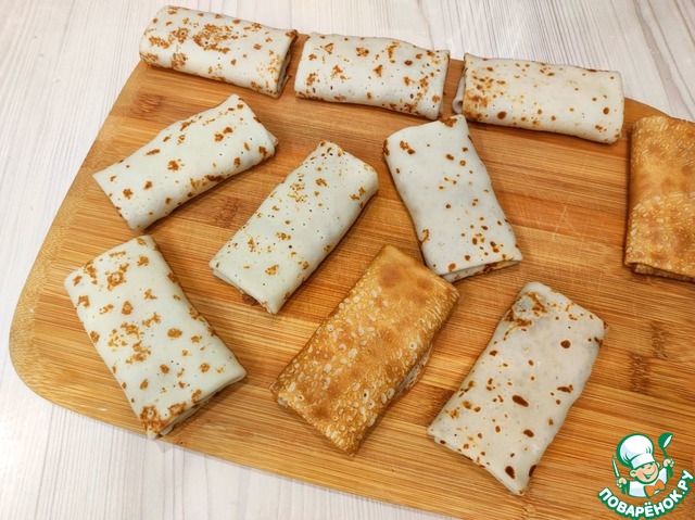Перед подачей обжарить блинчики на растопленном сливочном масле. Подавать горячими.