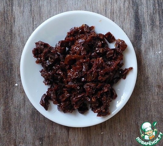 Вяленые томаты тоже мелко нарезать.