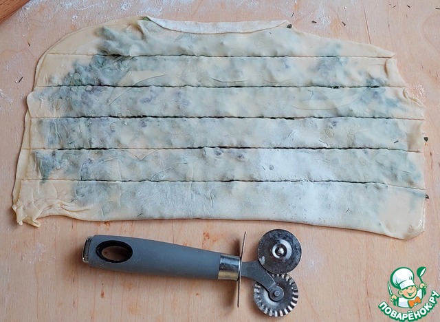 Разрезать тесто на одинаковые полоски.