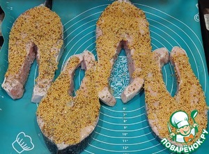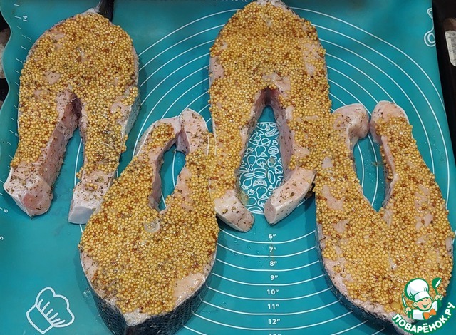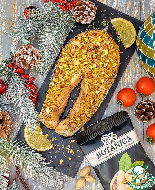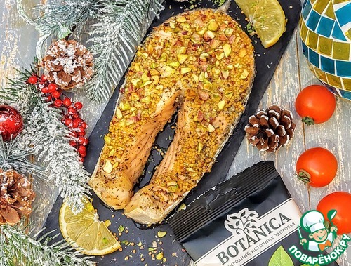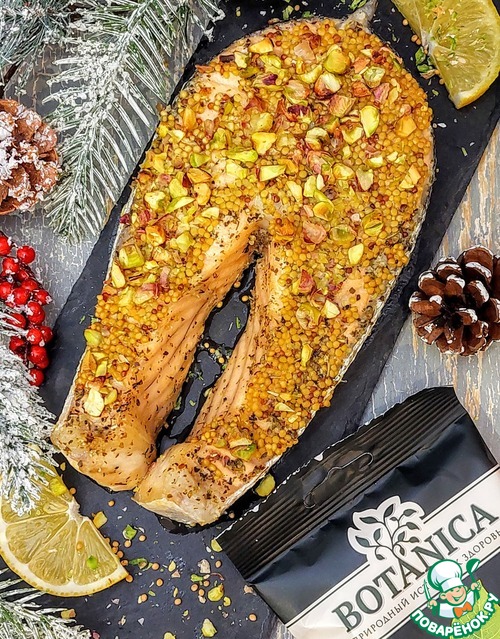 Рецепт «Лосось запечённый с горчицей и фисташками»: