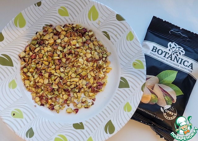 Посыпать фисташками стейки. Готовить в духовке, заранее разогретой до 180 градусов, 15-20 мин., в зависимости от толщины ваших стейков.