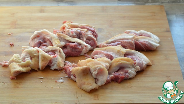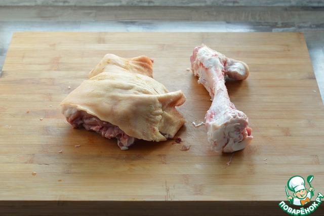 Из свиной рульки удалите кость, она не понадобится. Можн использовать её для варки бульона, холодца.