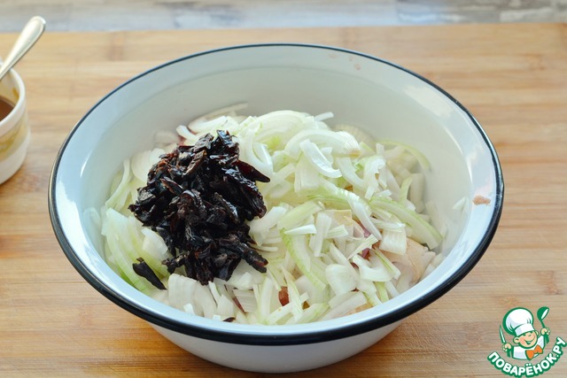 Готовьте при температуре 160°С около 2 часов. За это время мясо и лук растомятся и получится шикарное жаркое, с фруктовым оттенком, который придаст чернослив.