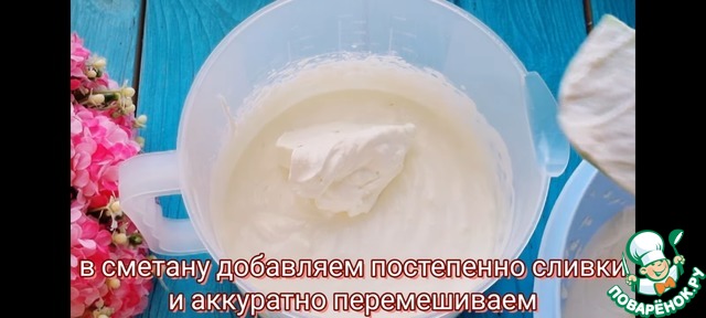 Делаем крем. В сметану добавляем пудру и взбиваем на большой скорости миксера 2 - 3 минуты. Затем в отдельной чашке сливки взбиваем до плотных пиков постепенно увеличивая скорость миксера. Далее в сметаннный крем в несколько приёмов добавляю взбитые сливки и перемешиваем аккуратно лопаточкой. Крем готов!
