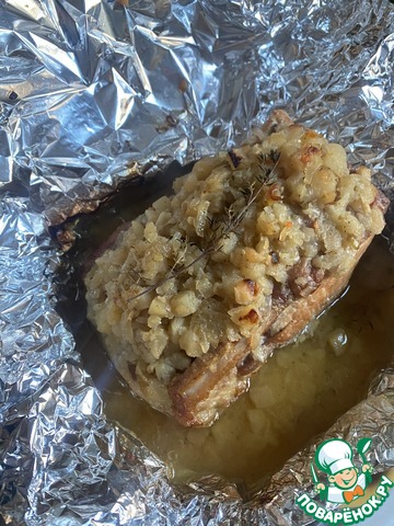 Вылить соус на свинину, накрыть фольгой и запекать в течение 1–1,5 часов при 180 градусах, пока свинина не будет готова.