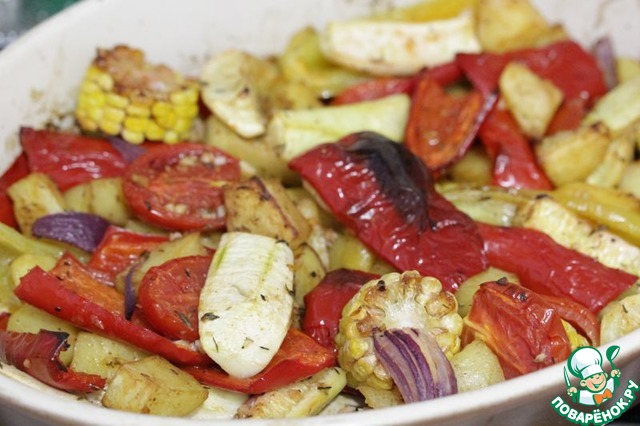 Запеченные овощи с кукурузой