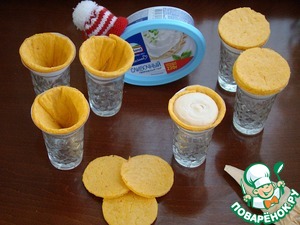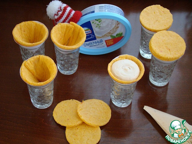 • Во внутрь бумажных пирамидок поместить бисквитные заготовки.