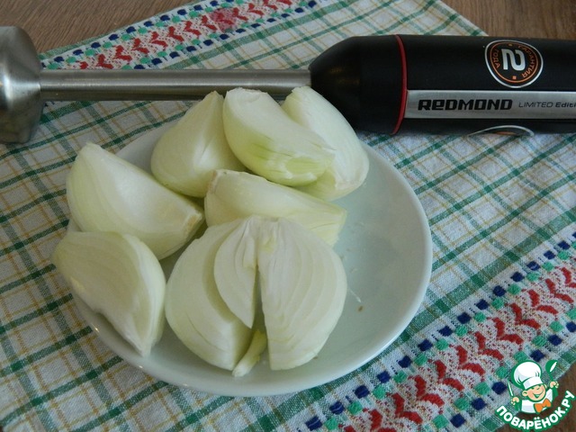 К измельченной рыбе добавим лук и ломтики хлеба замоченные в небольшом количестве воды и измельченные блендером.