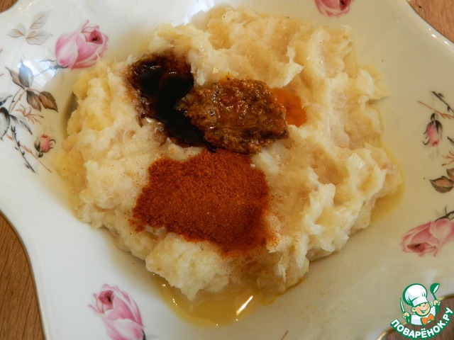 Измельченную погружным блендером морковь вмешаем в фарш, добавим соевый соус, размешаем до однородности.