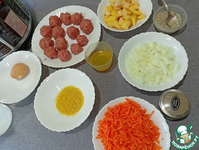 Ингредиенты для «Кудрявый суп с фрикадельками»: