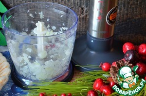 Лук (50 г.) почистить, нарезать и измельчить в блендере.