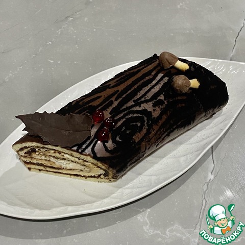 Тесто для рулета несколько плотнее, чем классический бисквит, но это позволяет ему хорошо сворачиваться не ломаясь. Очень вкусное сочетание в начинке сливовой прослойки и крем-чиза. Можно подать обычным рулетом, а можно сделать в виде рождественского полена (что я и делала к празднику).