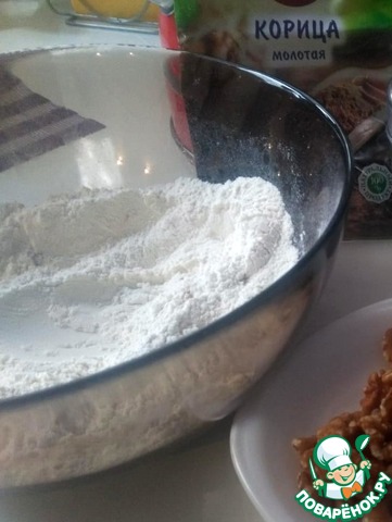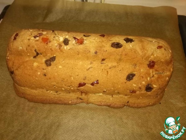 Смешать обваленный в муке изюм, дробленые орехи, цукаты, вяленную или сушеную вишню. Отставить на время.