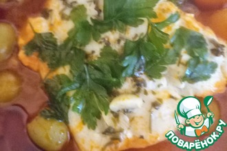 В разогретую сковороду гриль наливаем масло оливковое или подсолнечное. Обжариваем стейки на среднем огне с обеих сторон до золотистого цвета. Перекладываем на отдельное блюдо. В другой сковороде на топленом сливочном масле слегка поджариваем чеснок, добавляем помидоры Черри. Через пару минут отправляем в сковороду сыр, далее зелень. Вливаем сливки, перемешиваем, На вкус добавляем приправы и специи, в моем случае это сванская соль. Все эти действия делаем быстро, чтобы соус не сильно загустел.