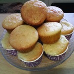 Большому кексу понадобится 40-50 минут, маленьким в два раза меньше времени. Готовность проверяйте зубочисткой, она должна быть сухая.