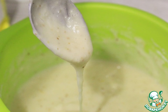 Всыпать муку, смешанную с разрыхлителем. Хорошо перемешать. -