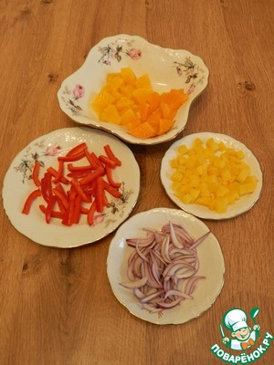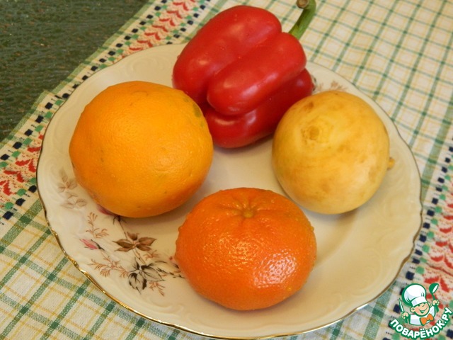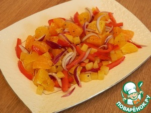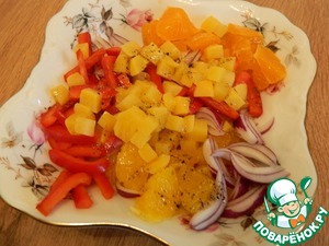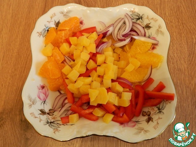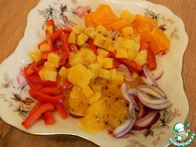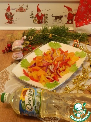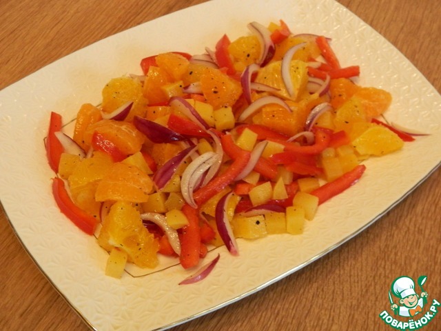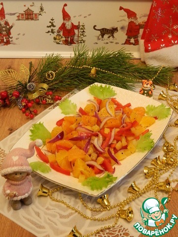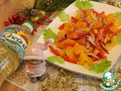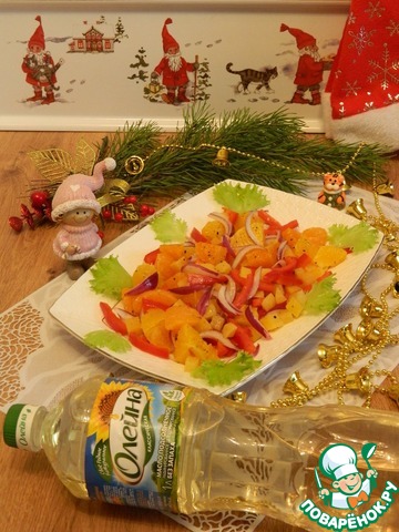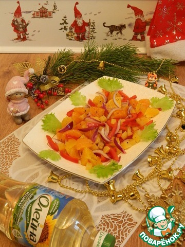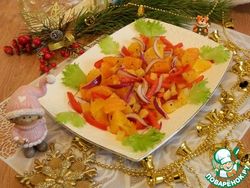 Пикантный салат с цитрусовыми нотками, сочный, ароматный, яркий. Подходит для праздничного стола, для ужина на двоих.