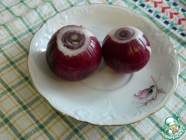- Лук репчатый (фиолетовый ,маленьких) — 2 шт