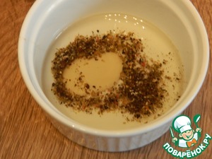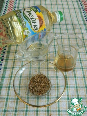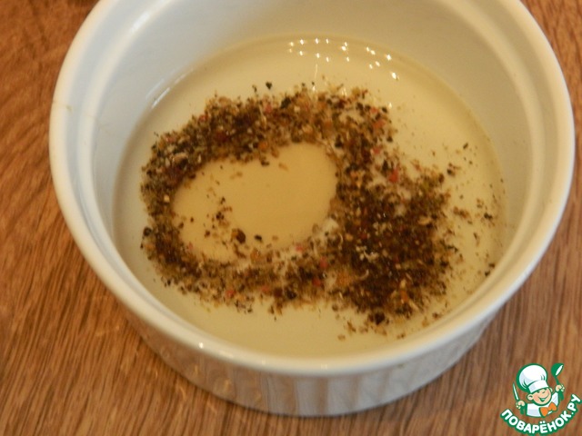 Нам потребуется заправка из масла, уксуса и смеси перцев.